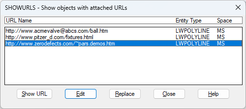 Enter SHOWURLS to display the Showurls dialog box. You can click a single URL to display it, or you can click one or more URLs to edit or replace them.