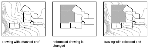 Whenever you modify and save an externally referenced drawing in a network environment, other people can access your changes immediately by reloading the xrefs in their open drawings.