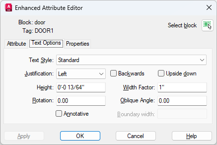 Specifies the text style for the attribute text. Default values for this text style are assigned to the text properties displayed in this dialog box.