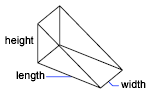 Creates a wedge with length, width, and height values you specify. The length corresponds to the X axis, the width to the Y axis, and the height to the Z axis. If you pick a point to specify the length, you also specify the rotation in the XY plane.