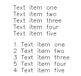 Numbering is added to individual text objects and to each line of multiline (mtext) objects.