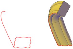 The EXTRUDE command creates a solid or surface that extends the shape of a curve. Open curves create surfaces and closed curves create solids or surfaces.