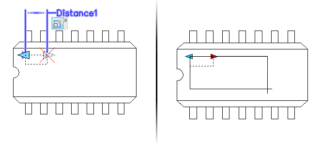 A scale action applied to a polar parameter scales the selected objects by the specified distance and angle. While the resulting geometry behaves in the same way as a scale action applied to a linear parameter, the way the grips are manipulated is different in the Properties palette.