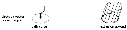 Select a line, arc, circle, ellipse, or polyline to sweep in a straight path. Then select a line or polyline to determine the first and last points of a vector that indicates the direction and length of the polygon mesh.