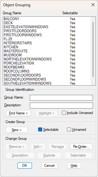 Creates a new group from the selected objects, using the name and description under Group Name and Description.