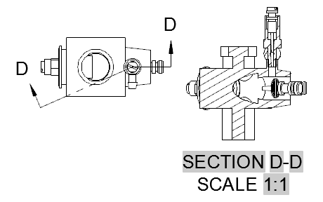 An aligned section view is generated by cutting through the entire object along two non parallel work planes, such that they pass through specific objects.