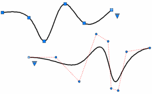 Splines are defined either with fit points, or with control vertices. By default, fit points coincide with the spline, while control vertices define a control frame. Control frames provide a convenient method to shape the spline. Each method has its advantages.