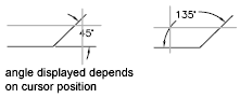The program determines the angle by using each line as a vector for the angle and the intersection of the lines for the angle vertex. The dimension line spans the angle between the two lines. If the dimension line does not intersect the lines being dimensioned, extension lines are added as needed to extend one or both lines. The arc is always less than 180 degrees.