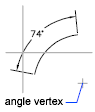 Uses points on the selected arc or polyline arc segment as the defining points for a three-point angular dimension. The center of the arc is the angle vertex. The arc endpoints become the origin points of the extension lines.