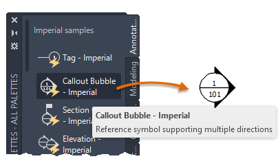 - Drag objects from your drawing onto the palette.