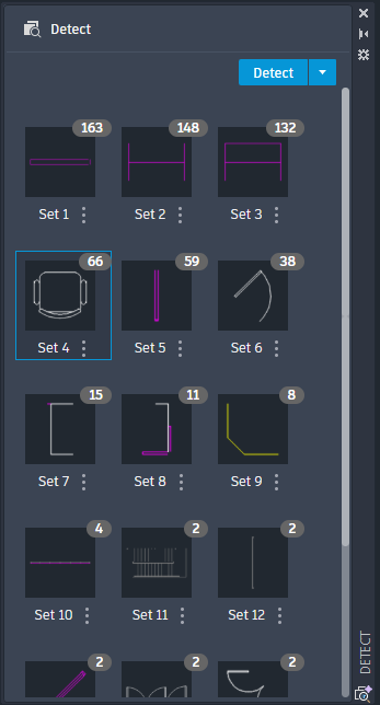 When you start Detect, Autodesk AI scans the drawing's geometry. Once drawing analysis is complete, the palette will notify you of sets of detected objects that can be converted to blocks. A