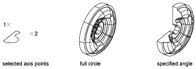 Creates a 3D solid or surface by sweeping an object around an axis.