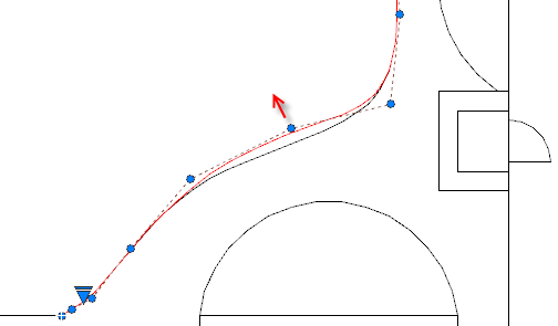 Multifunctional grips provide options that include adding control vertices and changing the tangent direction of the spline at its endpoints. Display a menu of options by hovering over a grip.