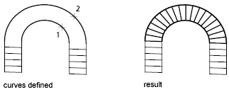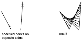 For open curves, construction of the ruled mesh is based on the locations of the specified points on the curves.