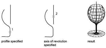 REVSURF creates a mesh that approximates a surface of revolution by rotating a profile about a specified axis. A profile can consist of lines, circles, arcs, ellipses, elliptical arcs, polylines, splines, closed polylines, polygons, closed splines, and donuts.