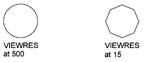 VIEWRES controls the appearance of circles, arcs, splines, and arced polylines using short vectors. The greater the number of vectors, the smoother the appearance of the curved object. For example, if you create a very small circle and then zoom in, it might appear to be a polygon. Using VIEWRES, you can increase the tessellation of the circle.