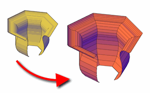 When you convert a mesh, the smoothness and number of faces of the resulting surface are controlled by the SMOOTHMESHCONVERT system variable. Whereas the previous example shows a conversion to a smooth, optimized surface, the following example shows a conversion to a faceted surface in which the faces are not merged, or optimized.