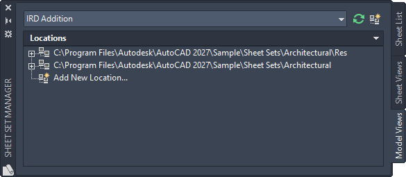 You can add and remove folder locations to control which drawing files are available for the current sheet set.