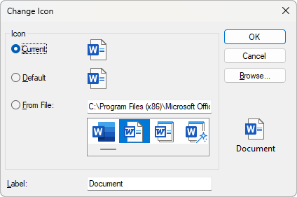 Specifies an icon from a file (valid types include EXE, DLL, and ICO).