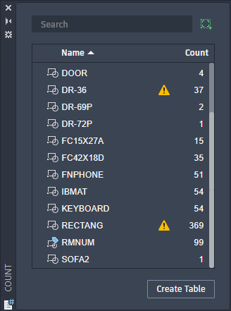 Note: Only visible blocks in the model space are displayed in the Count palette.