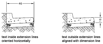 Whether text is inside or outside the extension lines, you can choose whether it is aligned with the dimension line or remains horizontal. The following examples show two combinations of these options.
