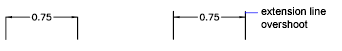 Specifies a distance to extend the dimension line past the extension line when you use oblique, architectural, tick, integral, and no marks for arrowheads. (DIMDLE system variable)
