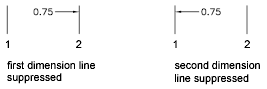 Suppresses display of dimension lines. Dim Line 1 suppresses the first dimension line; Dim Line 2 suppresses the second dimension line. (DIMSD1 and DIMSD2 system variables)