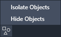 Find on the status bar to access options to hide objects, to isolate objects, and to end object isolation.