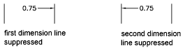 - Suppress the dimension line or, if the dimension line is broken by text, one or both halves