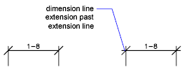 - Control the distance by which the dimension line extends beyond the extension lines for architectural tick (oblique stroke) arrowheads