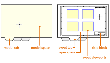 The area within a layout is called paper space, where you can add a title block, display scaled views of model space within layout viewports, and create tables, schedules, notes, and dimensions for your drawing.