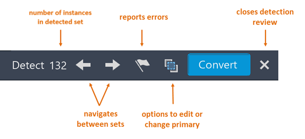 Closes the Detection toolbar and ends the detection review.