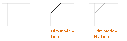By default, the objects selected to define a chamfer or bevel are trimmed or extended to the resulting angled line. You can use the Trim option to specify whether the selected objects are changed or left unchanged.