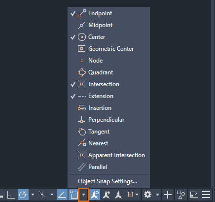 Click the drop-down arrow of items on the status bar to access additional options for the settings.