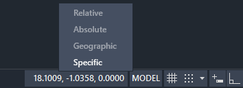 Note: If the coordinates are not displayed on the status bar, follow the steps described earlier to customize what is displayed and select Coordinates.
