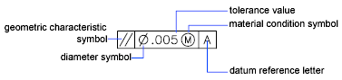 The symbol is inserted into the Sym text box in the Geometric Tolerance dialog box. The following table describes the symbols.