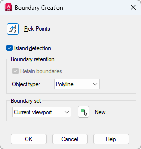 Controls the type of the new boundary object. BOUNDARY creates the boundary as a region or a polyline object.