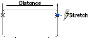The following example shows how dependency highlighting creates a halo effect for the associated parameter (labeled Distance) and action (labeled Stretch) when you select the custom grip in the Block Editor.