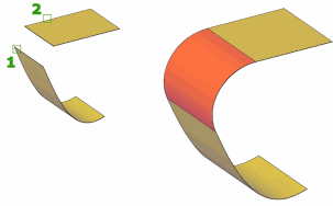 The fillet surface has a constant radius profile and is tangent to the original surfaces. The original surfaces are automatically trimmed to connect the edges of the fillet surface.