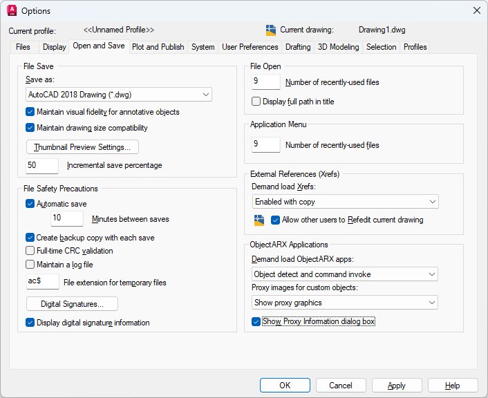 Controls settings that relate to AutoCAD Runtime Extension applications and proxy graphics.