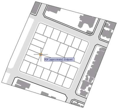 Object snapping to PDF underlays is similar to object snapping to drawing geometry. However, object snapping might not behave as expected, depending on how the PDF was created. For example, if the PDF was made from scanned architectural plans, the PDF is a raster image, not a vector-based image. Therefore, object snapping does not work. Also, geometry from PDF’s that were created by third party programs can contain nonstandard snapping points, such as circles with no center points.