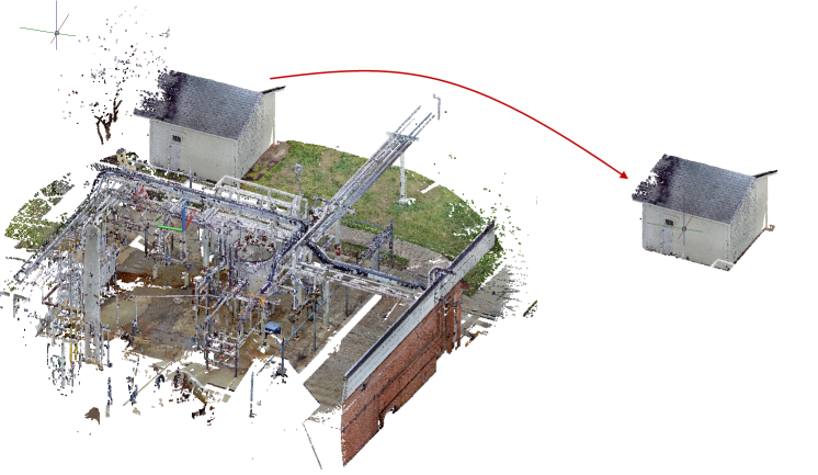 Cropping removes areas of a point cloud that you do not need to see and reduces the number of points displayed in the drawing. Cropping large point clouds can improve program performance.