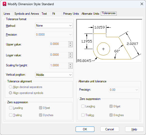 Controls the suppression of leading and trailing zeros and of feet and inches that have a value of zero. (DIMALTTZ system variable)