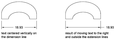 - Move with Dim Line. Positions text on the dimension line, and moves the dimension line farther away or closer to the object being dimensioned (no additional prompts).