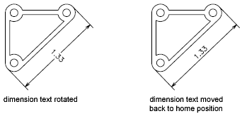 - Reset Text Position. Positions the dimension text back to its default (or “home”) position based on the active dimension style.