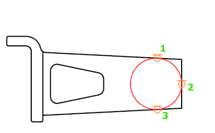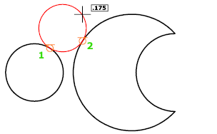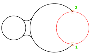 Sometimes more than one circle matches the specified criteria. The program draws the circle of the specified radius whose tangent points are closest to the selected points.