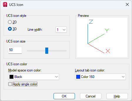 Controls the line width of the UCS icon if the 3D UCS icon is selected.