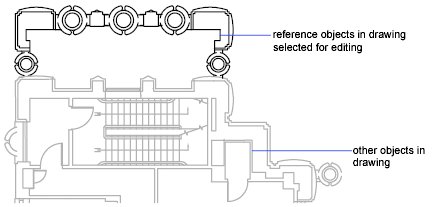 The objects that you select from the selected xref or block are temporarily extracted and made available for editing in the current drawing. The set of extracted objects is called the working set, which can be modified and then saved back to update the xref or block definition.