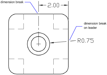 With dimension breaks, you can keep the dimension, extension, or leader lines from appearing as if they are a part of the design.