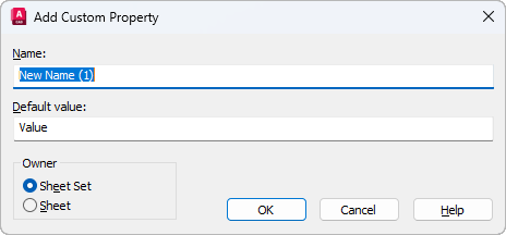 Creates a custom property to be associated with the current sheet set or with each sheet.